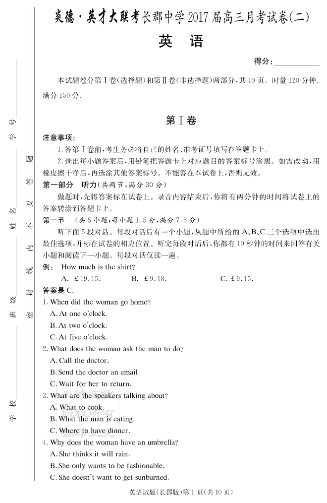| 資源類別: | 名校月考 | |