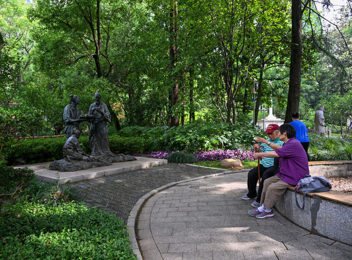 市民在位于上海徐家匯的光啟公園休息(2025年5月17日攝)。(新華社記者 陳朔/攝)