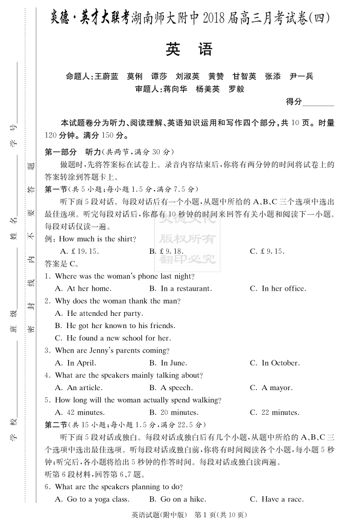 | 資源類別: | 名校月考 | |