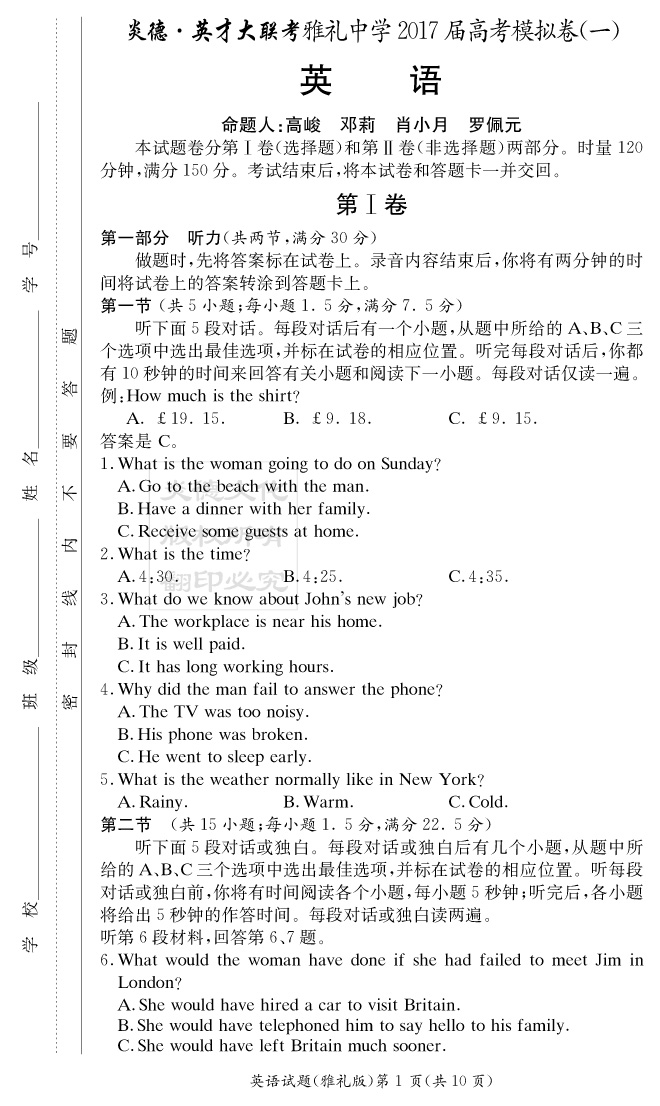 上一篇:【文綜】炎德英才大聯考2017雅禮中學高三8次月考(模擬一)