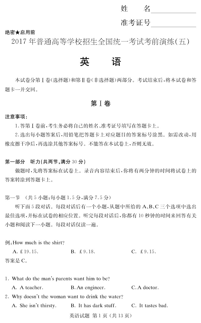 下一篇:【語文】2017年普通高等學校招生全國統(tǒng)一考試考前演練(五)