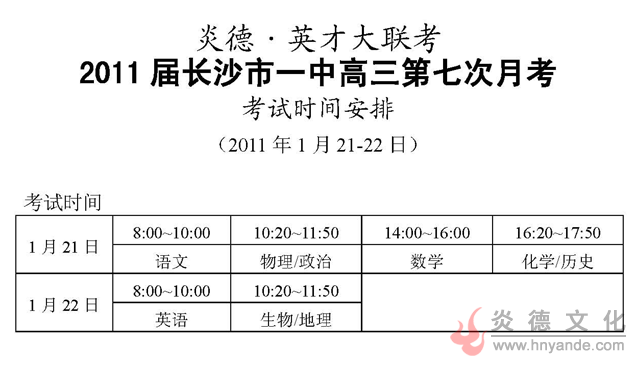上一篇:炎德英才大聯考長沙市一中2011屆高三第六次月考考試時間和范圍