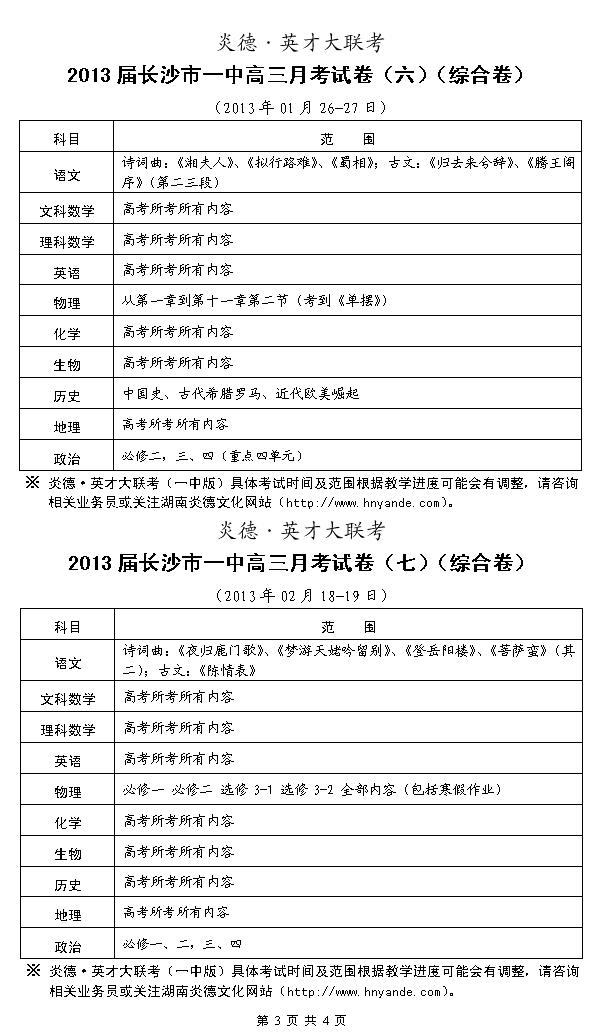 上一篇:炎德英才大聯考長沙市一中2013屆高三第一次月考考試時間和范圍