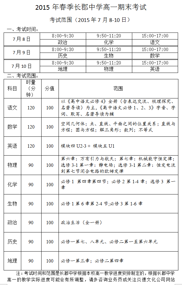 上一篇:2015春季長郡中學高一期中考試考試范圍(2015年4月30日、5月4-6日)