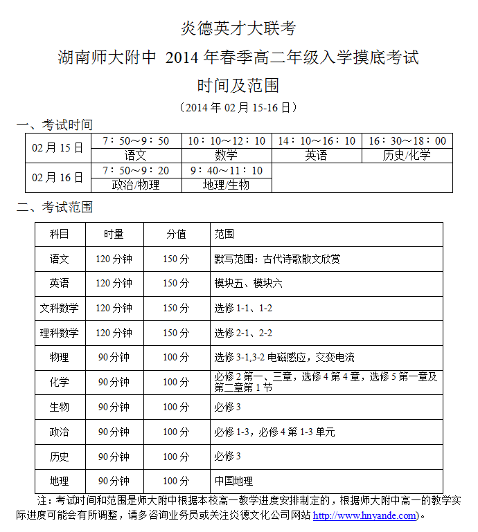 來源:炎德文化點擊:2014-02-10 10:50:47收藏本文當前位置:考試范圍 師大附中 高二 正文