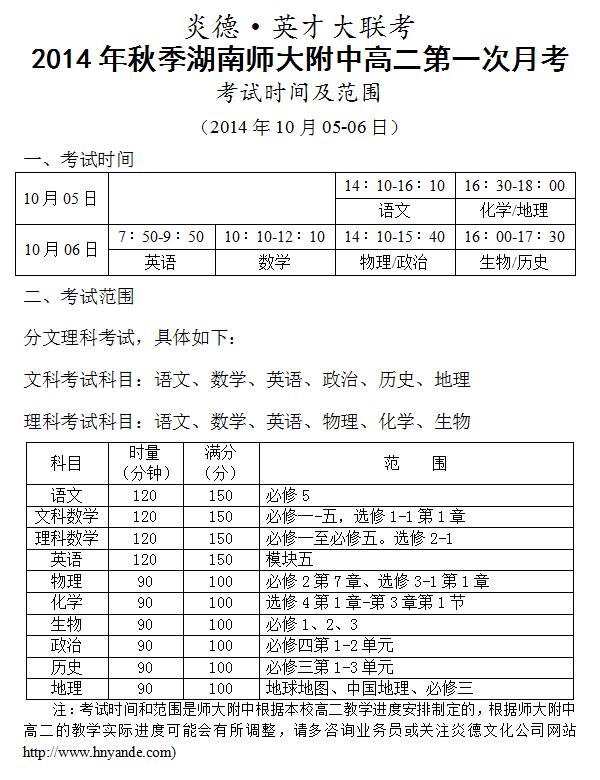 上一篇:炎德英才大聯考師大附中2014年秋季湖南師大附中高二入學摸底考試時間和范圍(2014.08.30-31)