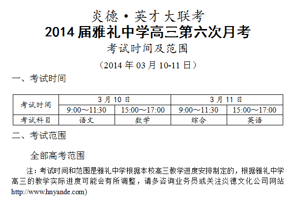 來源:炎德文化點擊:2014-03-05 17:28:23收藏本文當前位置:考試范圍 雅禮中學 高三 正文