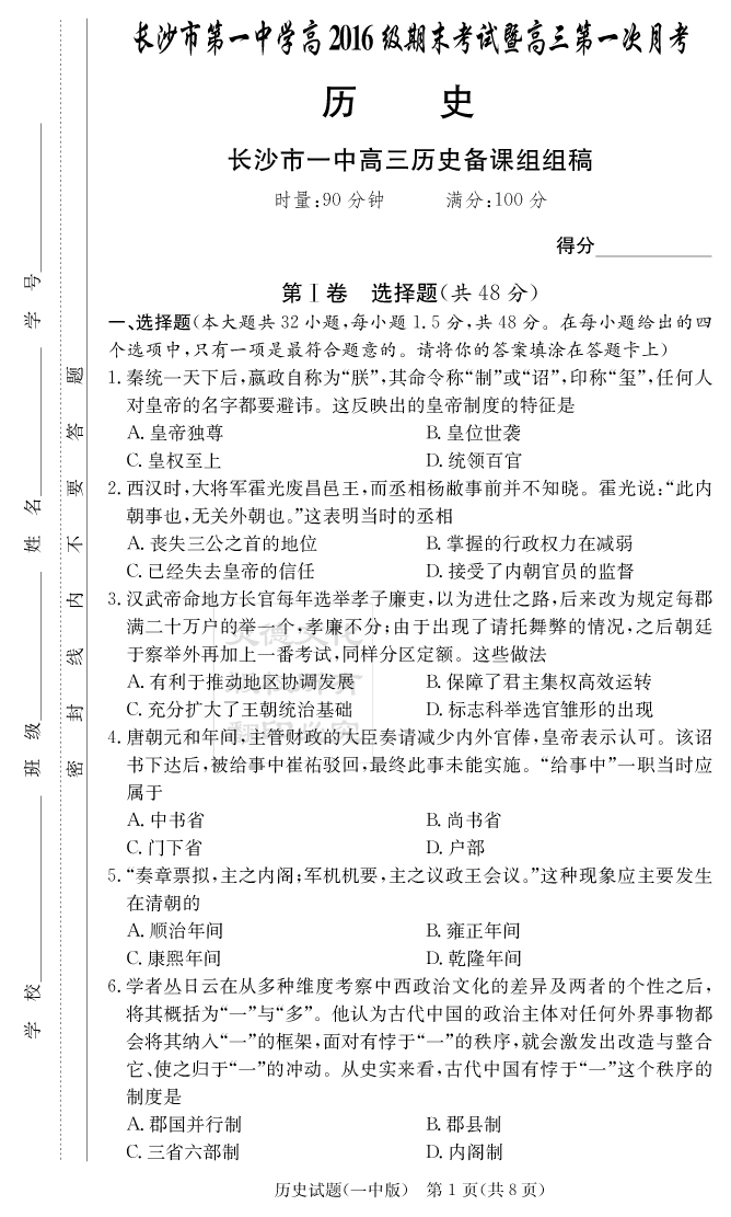 | 資源類別: | 名校月考 | |