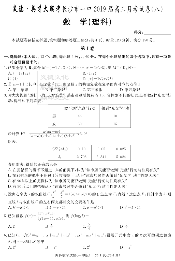 下一篇:【理綜】炎德英才大聯考2019長沙一中高三8次月考