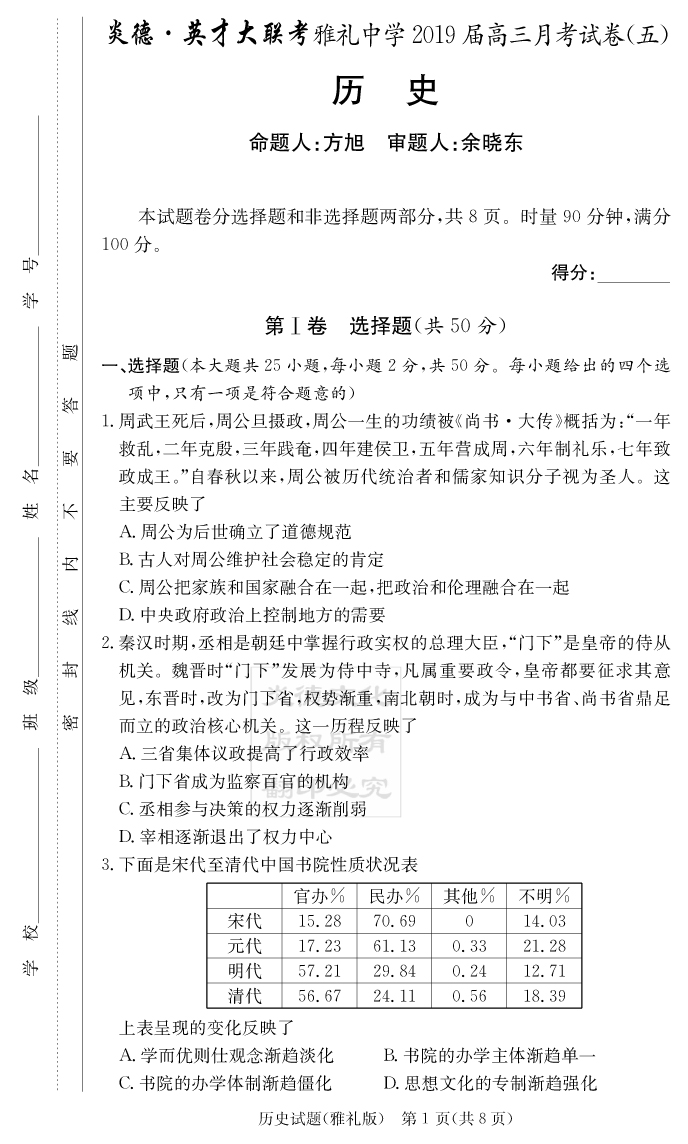 2025名師導學·名校名卷經典試題匯編·歷史