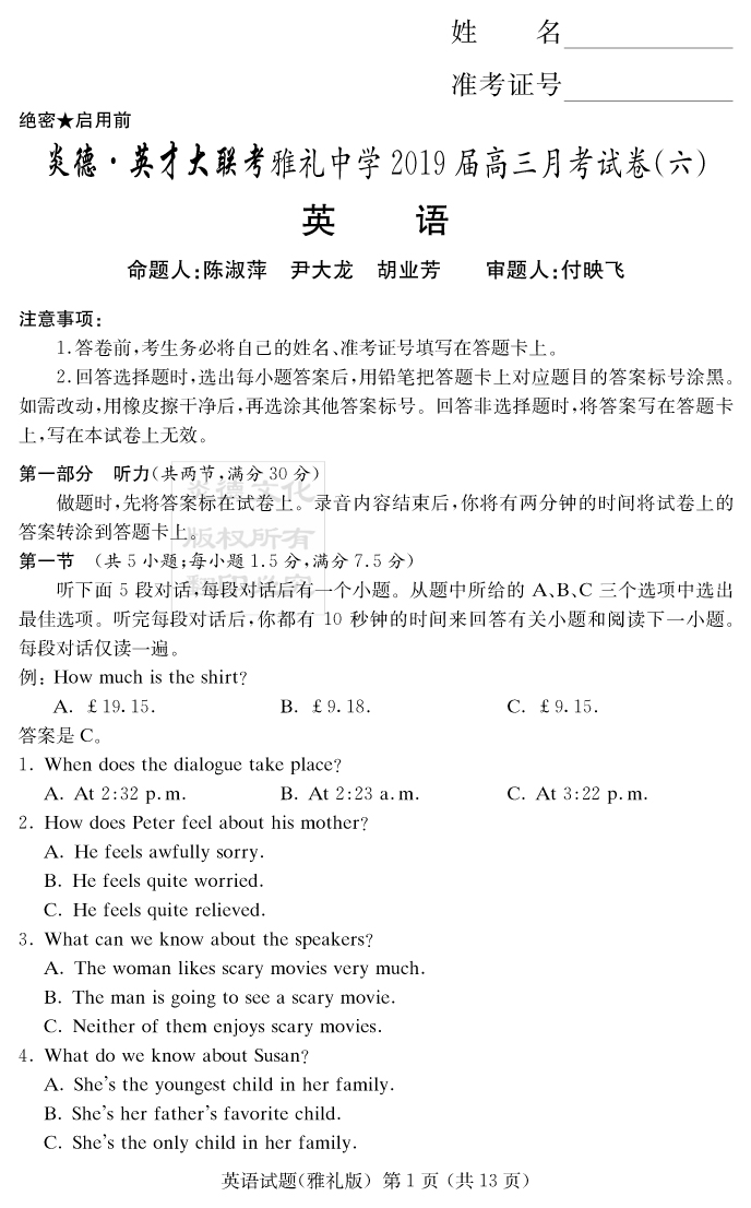 | 資源類別: | 名校月考 | |