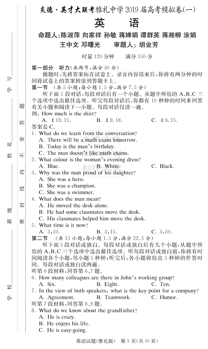 上一篇:【文綜】炎德英才大聯考2019雅禮中學高三9次月考(模擬一)