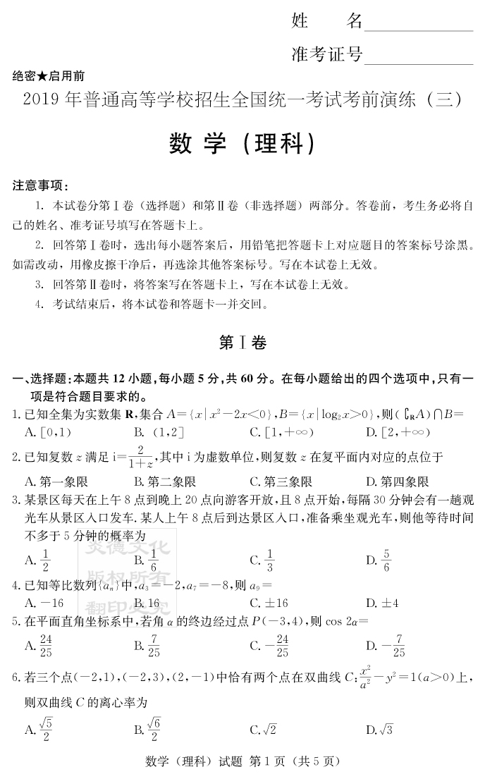下一篇:【理綜】2019年普通高等學校招生全國統一考試考前演練(三)
