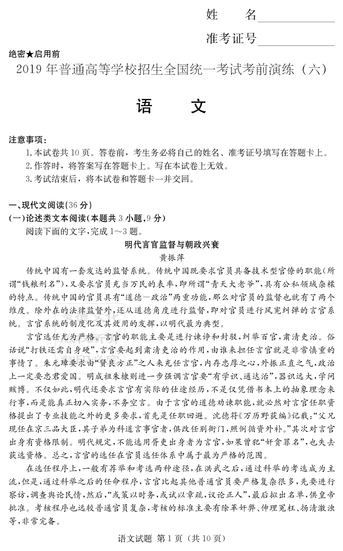 下一篇:【全科】2019年普通高等學校招生全國統一考試考前演練(一)