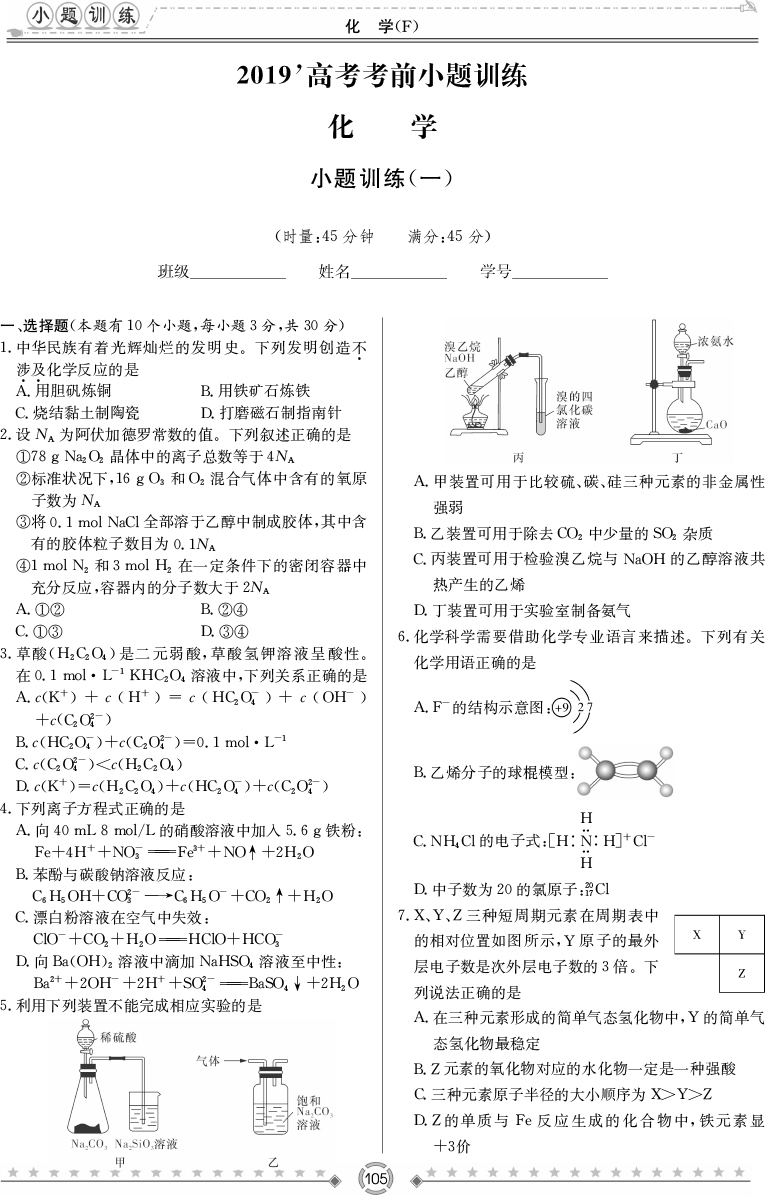 2026名師導學·高考總復習·小題量基礎周周考·化學