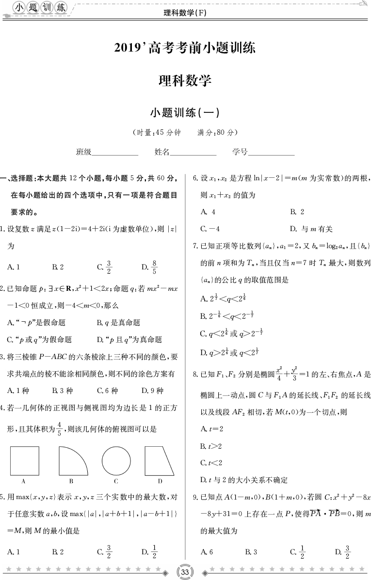 2026名師導學·高考總復習·小題量基礎周周考·數學