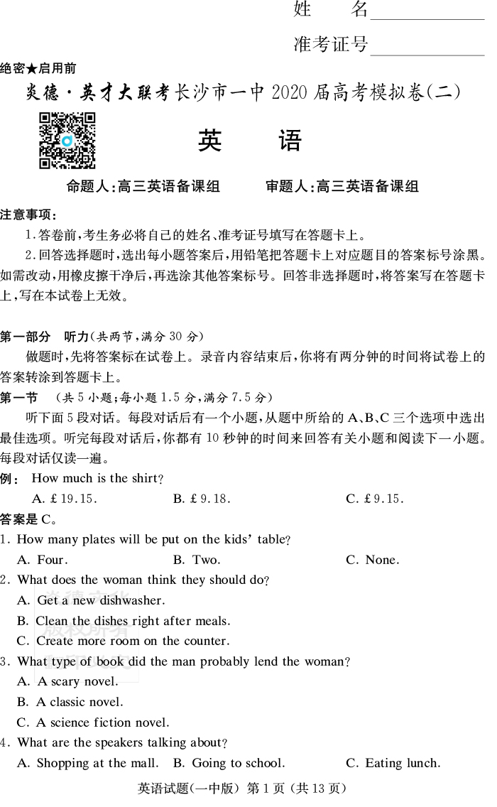 下一篇:【語文】炎德英才大聯考2020屆長沙市一中高三10次月考(模擬二)