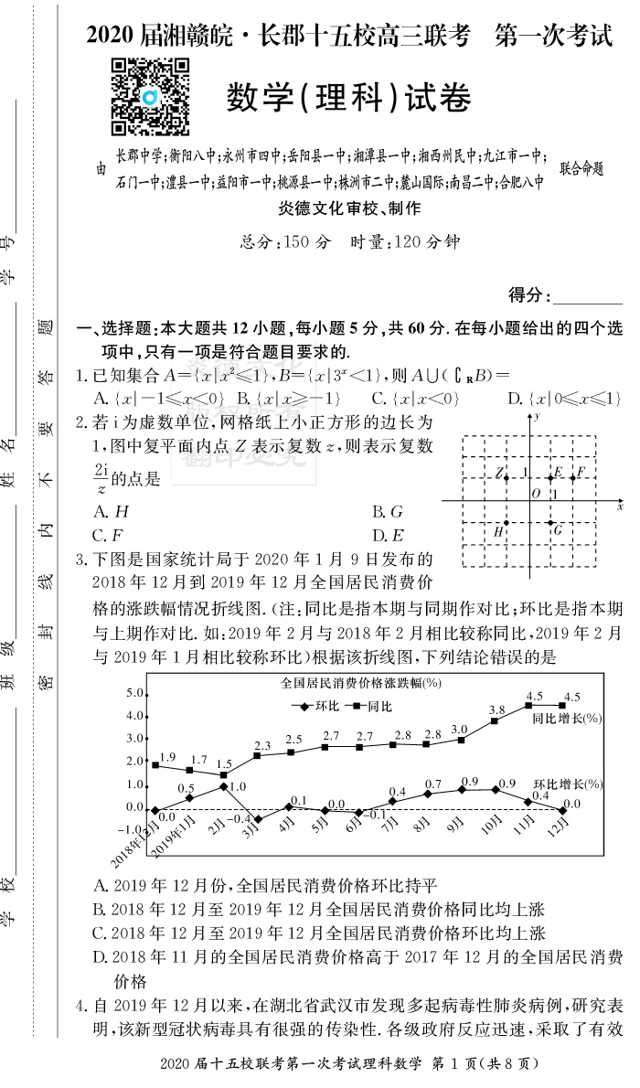 【理數(shù)】炎德英才大聯(lián)考2020屆長郡中學高三7次月考(十五校聯(lián)考一)