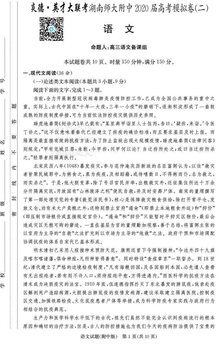 上一篇:【英語】炎德英才大聯考2020屆師大附中高三9次月考(模擬二)