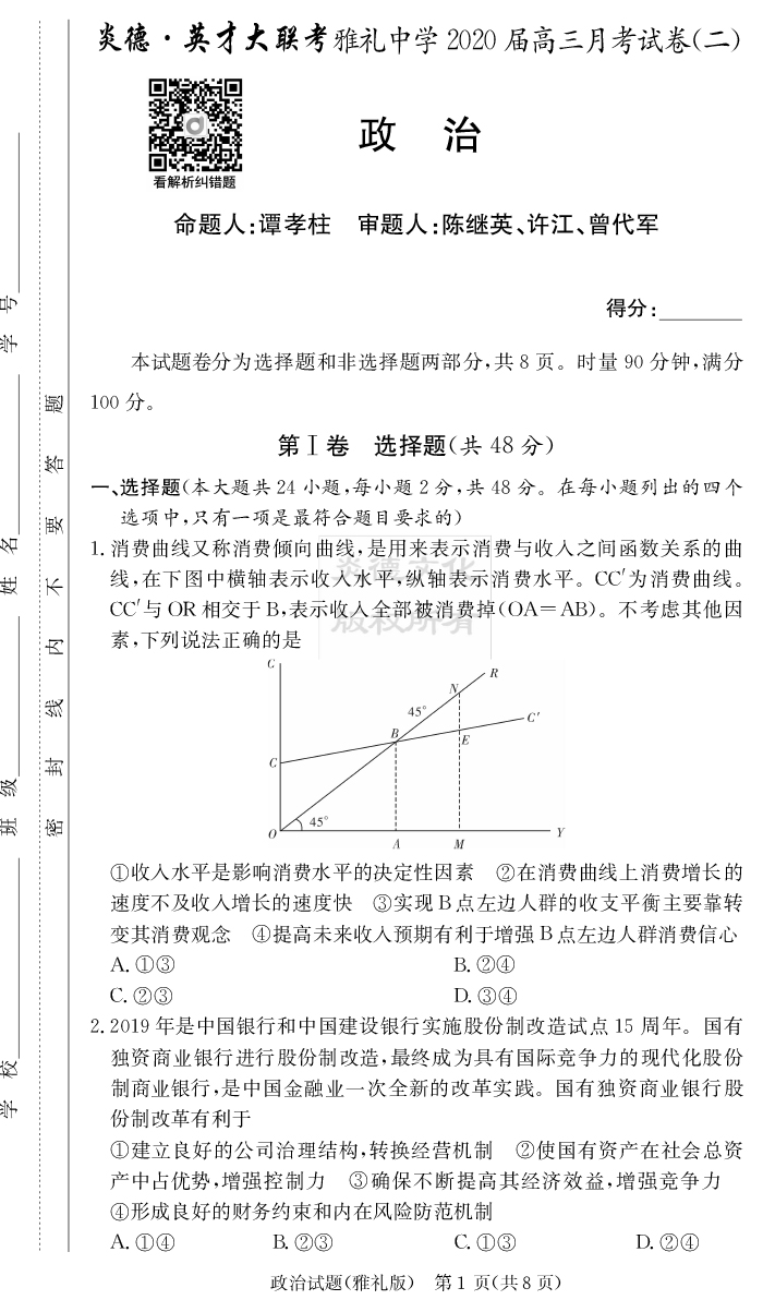 上一篇:【語文】炎德英才大聯考2020屆雅禮中學高三2次月考