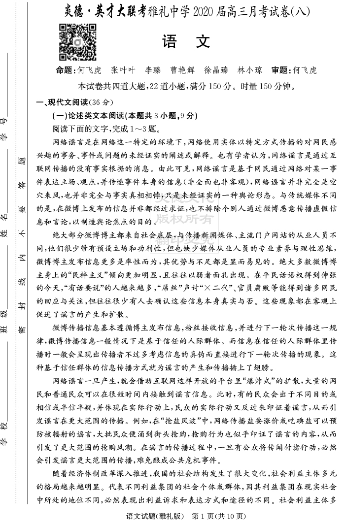 | 資源類別: | 名校月考 | |