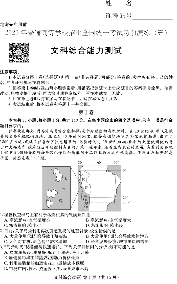 下一篇:【英語】2020年普通高等學校招生全國統一考試考前演練(五)