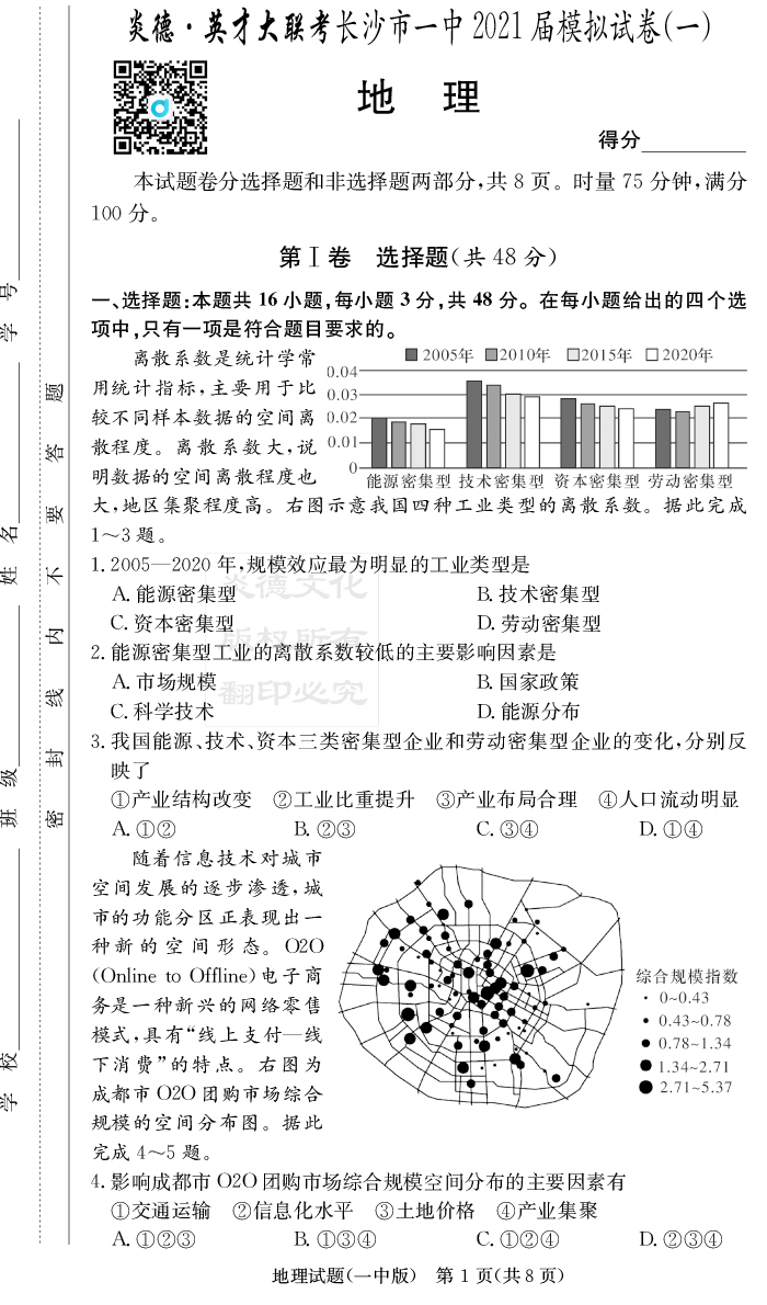 【地理】炎德英才大聯考2021屆長沙市一中高三10次月考(模擬一)