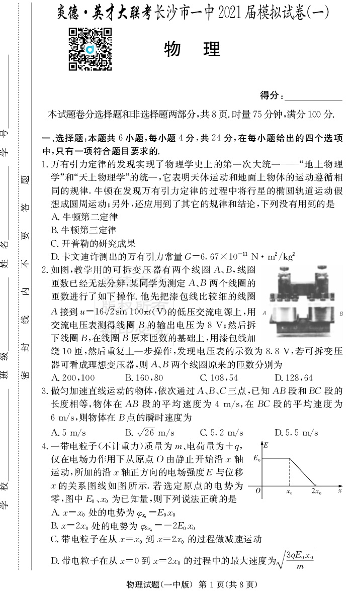 下一篇:【英語】炎德英才大聯考2021屆長沙市一中高三10次月考(模擬一)
