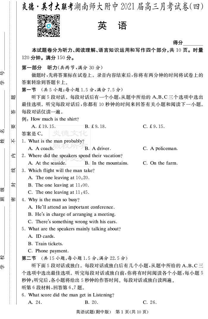 下一篇:【語文】炎德英才大聯考2021屆湖南師大附中高三4次月考