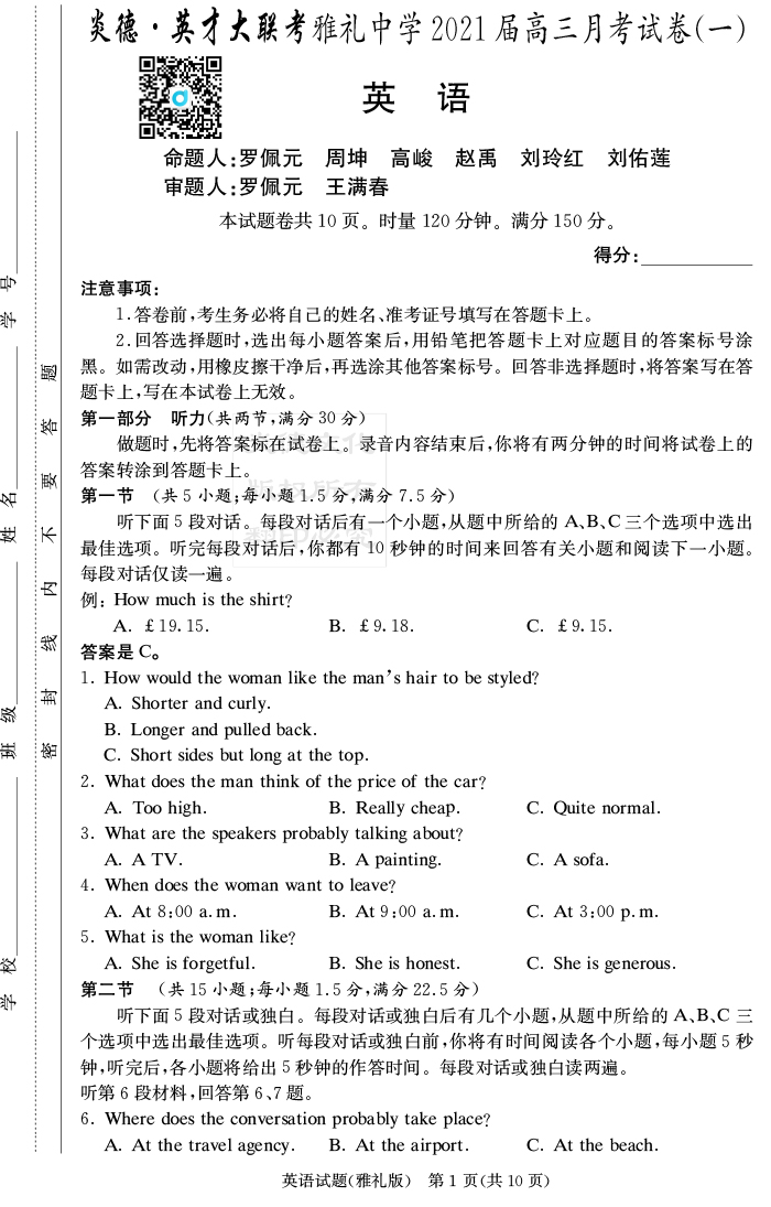 下一篇:【語文】炎德英才大聯考2021屆雅禮中學高三1次月考