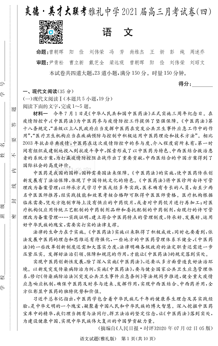 下一篇:【政治】炎德英才大聯考2021屆雅禮中學高三4次月考
