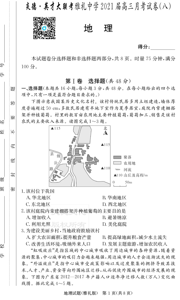 【地理】炎德英才大聯(lián)考2021屆雅禮中學(xué)高三8次月考