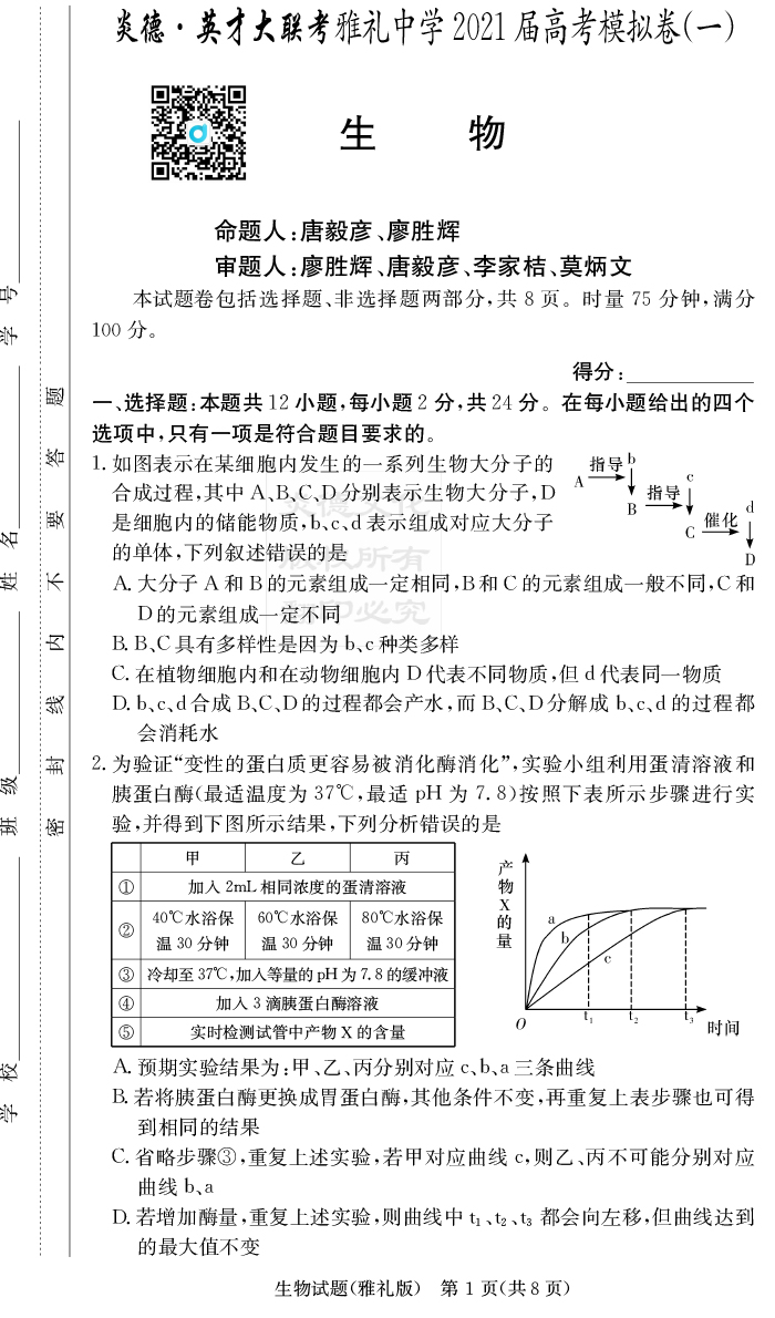 上一篇:【歷史】炎德英才大聯考2021屆雅禮中學高三9次月考(模擬一)