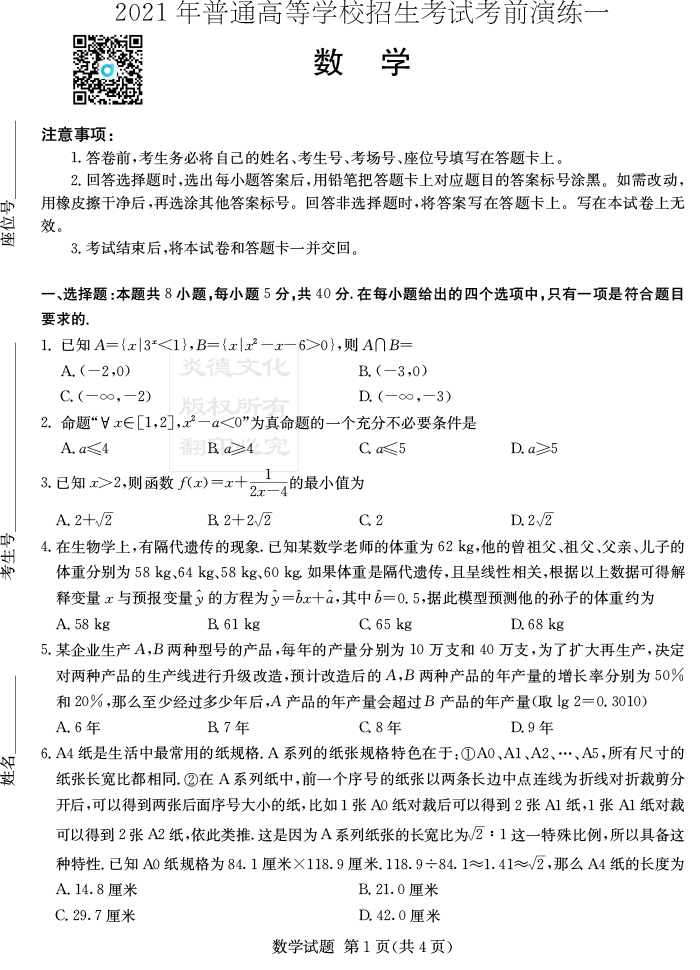 下一篇:【物理】2021年普通高等學校招生全國統一考試考前演練(一)