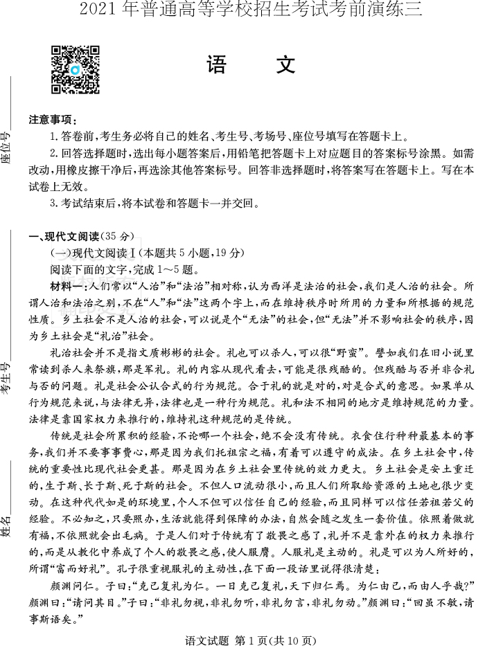 下一篇:【政治】2021年普通高等學校招生全國統一考試考前演練(三)
