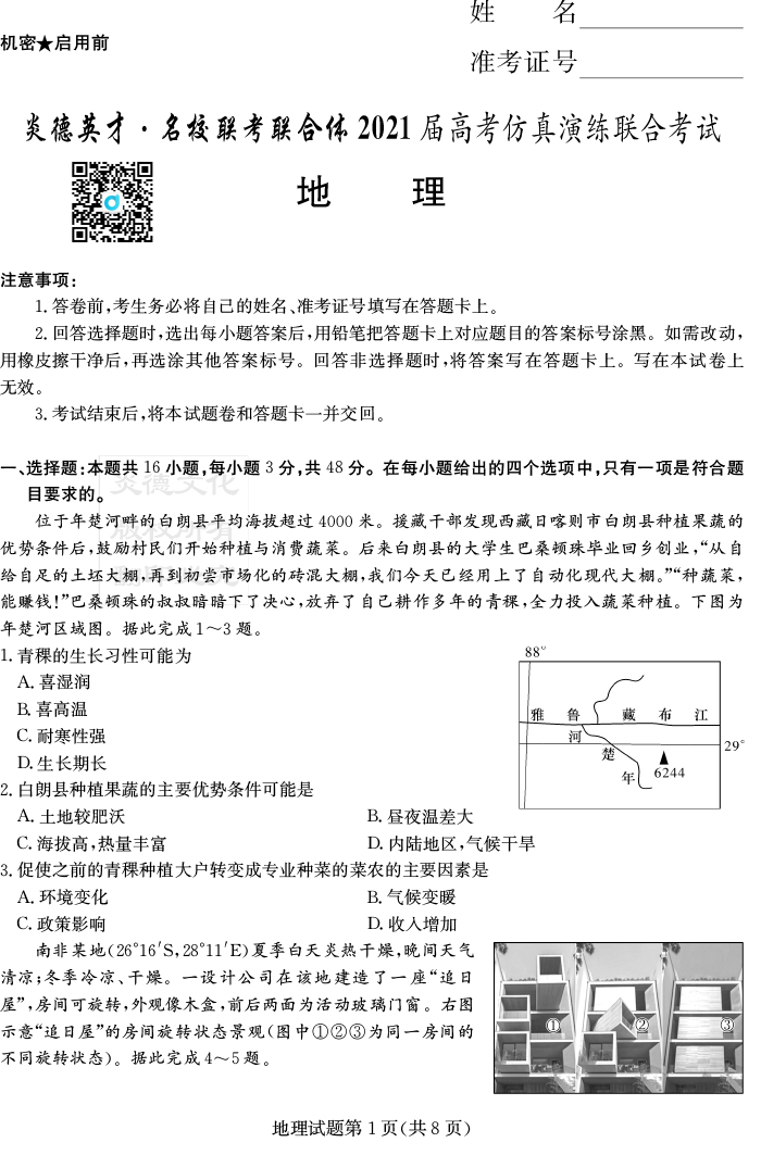 2026長郡中學新高考考前小題沖刺訓練·地理