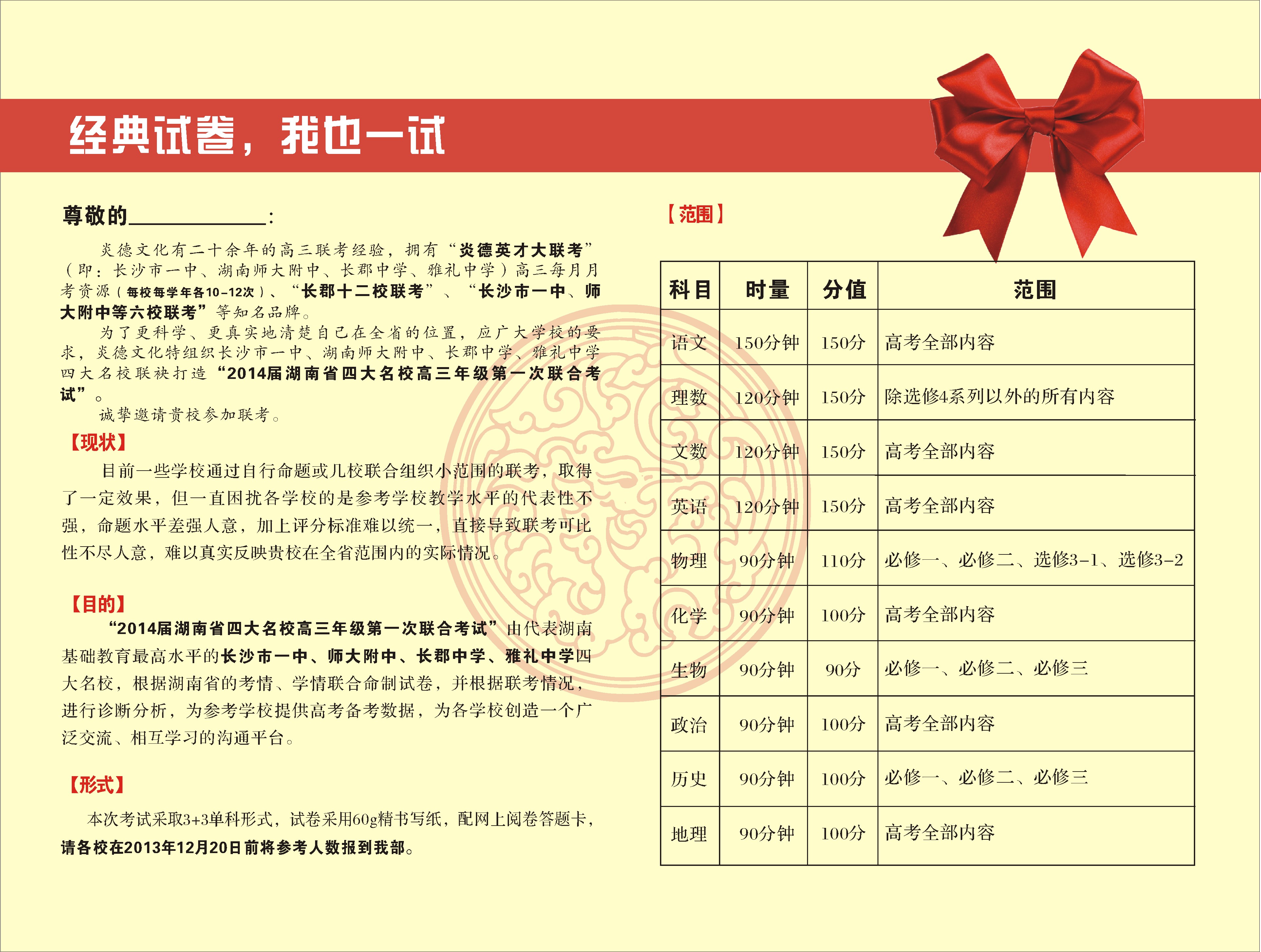 下一篇:炎德英才大聯考2014屆湖南省高三四校聯考考試時間安排及范圍(2014.01.19-20)