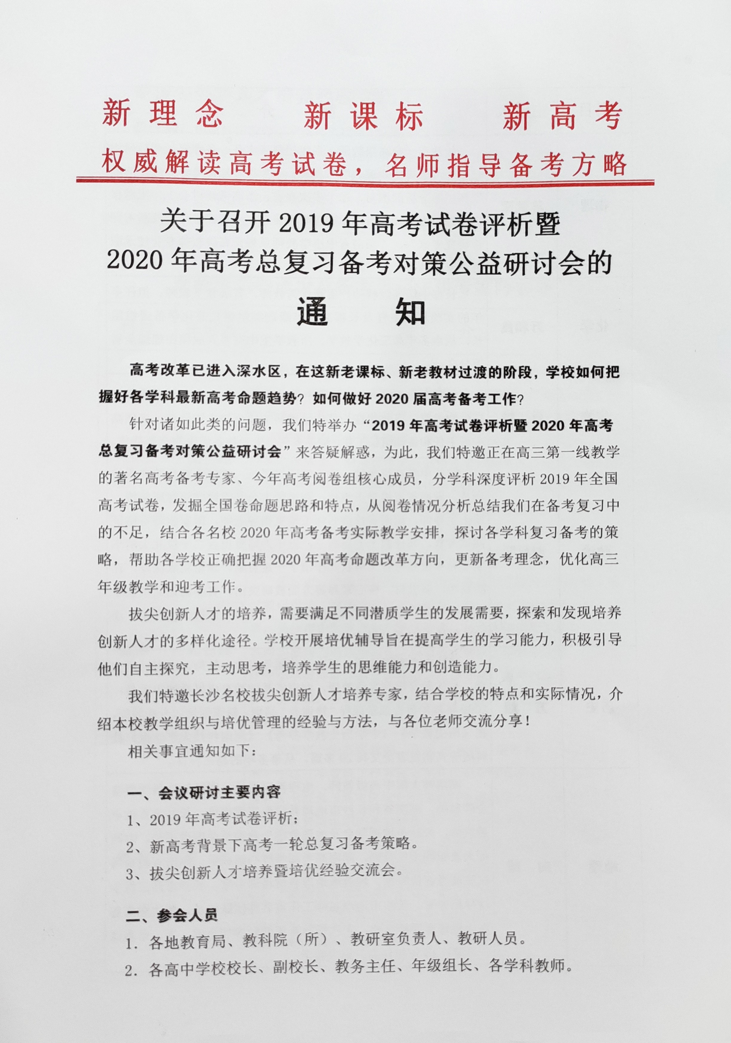 “學科研討會”邀請了湖南四大名校的知名高中的教學專家,從2019高考試卷評析、新課程標準與現(xiàn)行教材的內容差異,對2020屆高考一輪總復習的影響、結合老師自身以及學校的備考經(jīng)驗,分享了高考總復習備考方法與策略等,并就這三個方面全面、深刻、詳盡地向聽課老師們分享了自己對2019年高考的理解,以及對2020年高考的前瞻。深度評析2019年全國高考試卷,發(fā)掘全國卷命題思路和特點,從閱卷情況分析總結學校在備考復習中的不足,結合本校2020年高考備考實際教學安排,探討各學科復習備考的方法與策略,幫助大家正確把握2020年高考命題改革方向,更新備考理念,優(yōu)化高三年級教學和迎考工作。