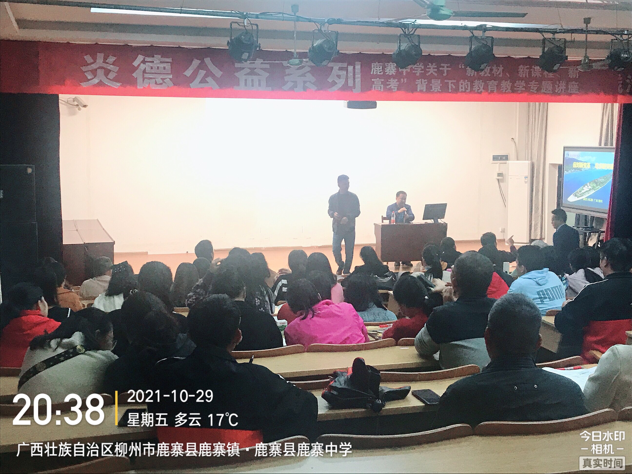 賀州昭平中學了解本次講座后,不畏跨區域學習,由高一分管副校長盧春英、學校教務處主任林家昌親自包車帶領35名高一老師來學習。