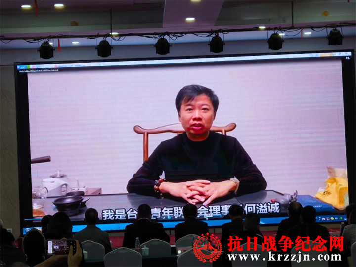 臺灣青年聯合會會長何溢誠通過視頻連線致辭。