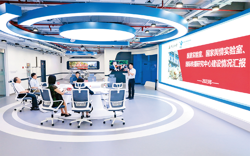 教育部黨組巡視聚焦高等教育“四個服務”時代使命,把服務國家重大戰略作為巡視監督重點內容。圖為2023年6月1日,教育部黨組第一巡視組在中國傳媒大學調研教育部首批試點建設的9家哲學社會科學重點實驗室之一——國家輿情實驗室。(教育部供圖)