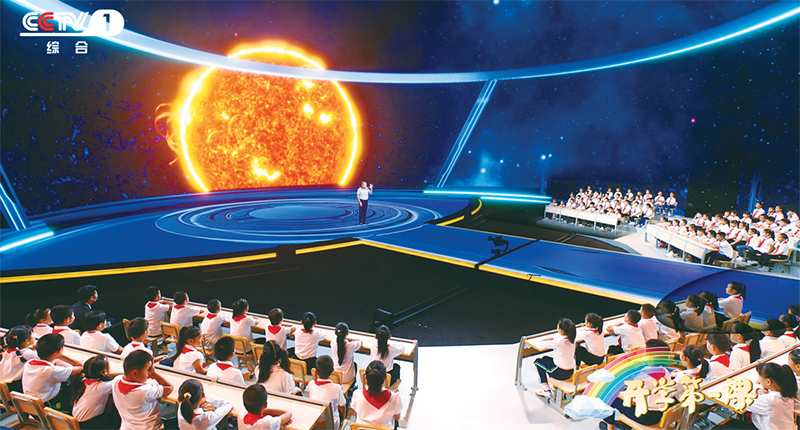 2023年《開學(xué)第一課》以“強(qiáng)國復(fù)興有我”為主題,從傳統(tǒng)文化、文明探源、生態(tài)文明、鄉(xiāng)村振興、國防教育、科技創(chuàng)新等多個(gè)方面,全景展示中國式現(xiàn)代化的萬千氣象。圖為中國科學(xué)院高能物理研究所研究員、“拉索”(LHAASO)首席科學(xué)家曹臻在向同學(xué)們介紹世界上海拔最高、規(guī)模最大的宇宙射線觀測裝置“拉索”的前世今生。(教育部供圖)