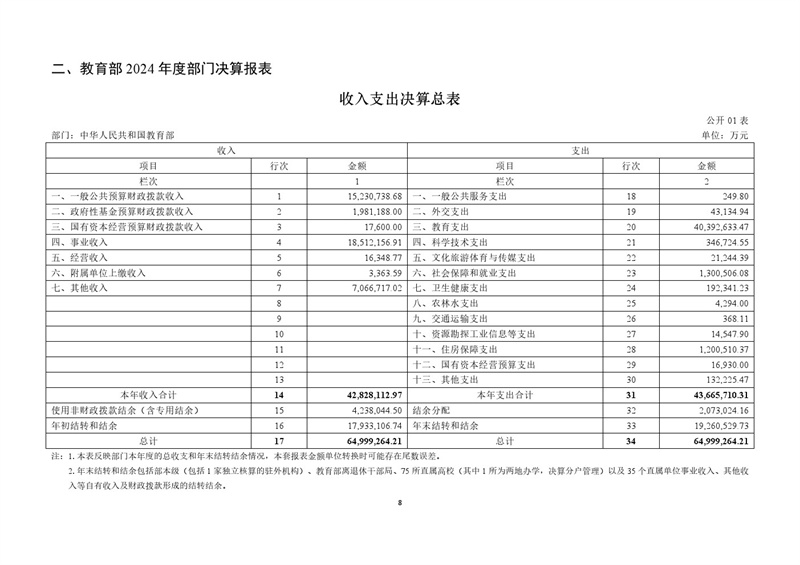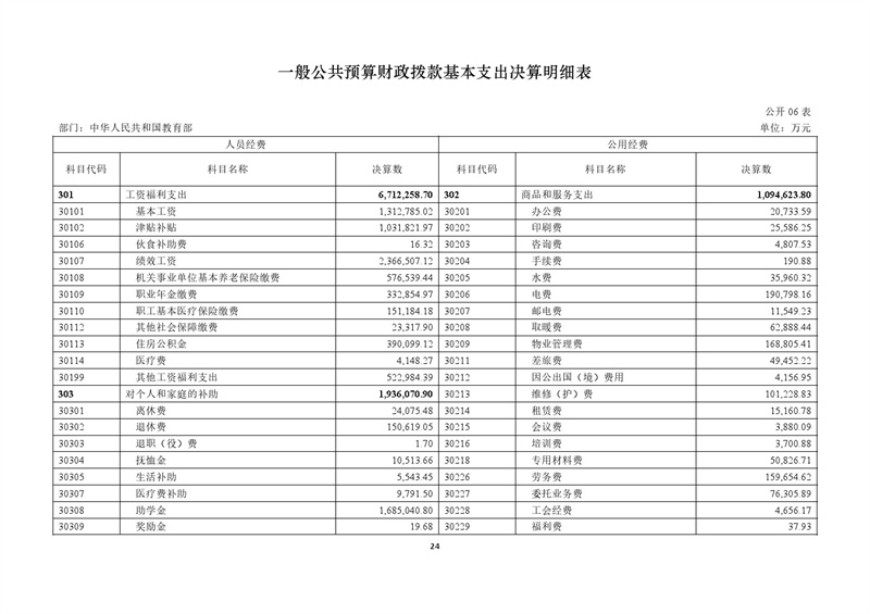 教育部2024年度部門(mén)決算