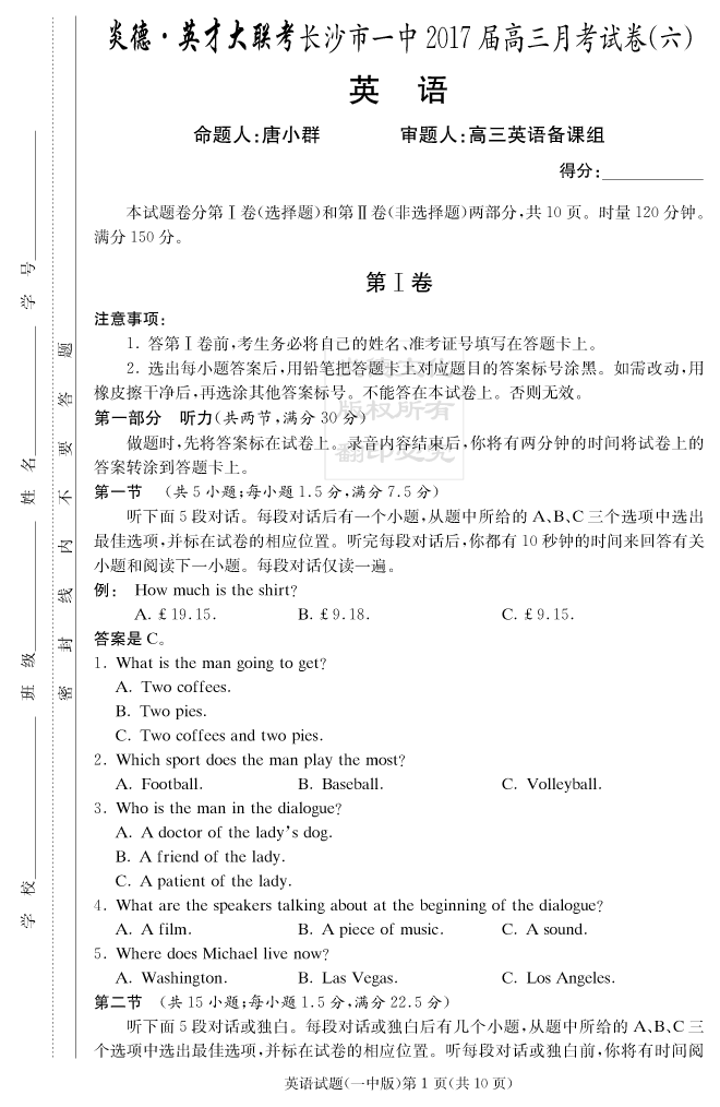下一篇:【語文】炎德英才大聯考2017長沙一中高三6次月考